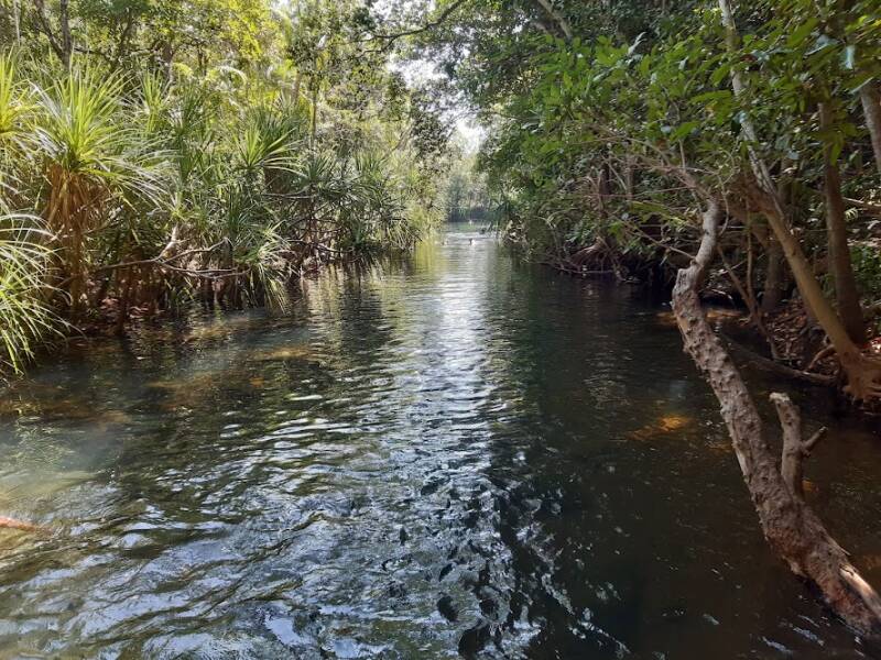 In the early evening we went off to a special place, where at high tide thousands of fish seek safety from other sea creatures and there is a ritual feeding - basically everybody throwing chunks of bread into the sea and watching the fish go crazy. There were mullet, catfish, barramundi and a flat fish.