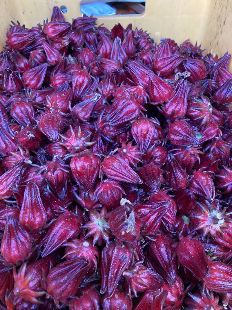Apart from the cattle and the limes that they grow on the farm, they also grow a crop of a plant called "rosella" which is most commonly referred to the Hibiscus sabdariffa plant, which is a tropical fruit. The flower heads are picked and the seed pod ejected. The petals are then frozen and eventually sent in bulk to be processed for use in the cosmetics industry. The seeds themselves are fed to the cattle.