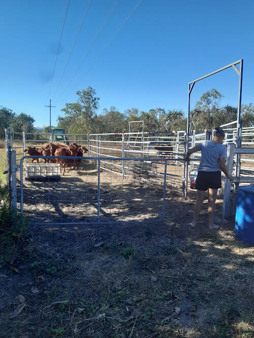 What have we been doing? Well, from the last entry until we went off to the Sunshine Coast (21st June) both of us have been hard at work. Merle was very busy (still) helping Neve get even more scarves and ties sorted for he upcoming stall at the Rodeo at Laura. In the meantime I ( Pete) have been sanding down the main table on the verandah redAy for oiling as well as making a 'reception desk' for Neve for her stall. We managed to construct one out of two redundant timber pallets - still a bit of a challenge, but we got there in the end. In the evening of Monday 16th we went over to Atherton in the evening to watch Neve playing in a local netball tournament - she is in a very good team. Unfortunately, the weather has turned and it was a bit cold and wet. The rest of the week was just 'work', Grandson - Jordan - came up to the farm on Friday with his girlfriend Georgia and we had a lovely steak dinner. lots of pix including some more of the cattle including Daryyl the Bull.